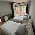 Studio Aprtment Urbannest Tirana ligger ungefär 10 minuter med bil från Skanderbegtorget och har utsikt över bergen. Wi Fi och en parkering finns också i den här lägenheten med 9 rum.